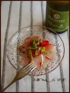 カンパチは薄く切り、塩で下味を付けて冷蔵庫へ入れておく。
