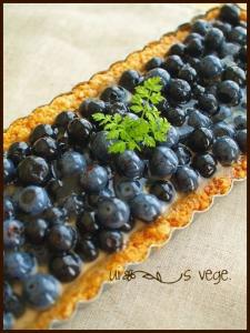 冷蔵庫のタルトの中が固まったら、ブルーベリーを上に乗せる。