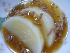 大根は電子レンジで加熱し、②のあんをかけて仕上げる。