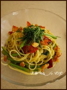 アスパラ、ベーコンは食べやすい大きさに切り大葉は千切りにしておく。