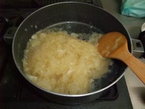 水気を切ったら鍋に入れ、砂糖・レモン汁を加えて煮詰め、まとまったら出来上がり。
