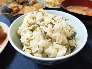 めかぶを醤油に数分漬け、炊き上がったごはんに鮭フレークと一緒に混ぜたら完成。