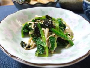 醤油と酒と練りがらしを合わせ、えのき・小松菜・韓国海苔を加えて和えたら完成です。