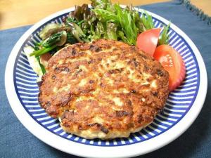 ミンチにしたマグロに玉ねぎ、卵、パン粉を加えて混ぜ合わせます。