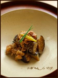 ナスは食べやすい大きさに切り、塩水に漬けておく。