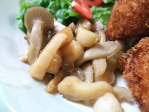 熱したフライパンに油をしき、シメジと貝柱とオイスターソースを加えて軽く炒め、塩で味を整えたら完成です。