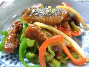 残りの材料を炒めたらサンマを戻し、調味料を加えて全体を炒めながら絡めたら完成です。