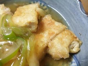 鍋に調味料を入れて火にかけ、ねぎを加えてとろみがついたら、厚揚げにかけて出来上がり。