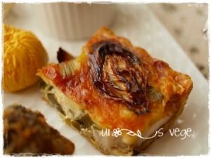 その上にチーズをお好みの量乗せ、トースターで焼いたネギを飾り190℃のオーブンで30分〜35分焼く。