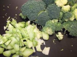 ブロッコリーの茎の部分は輪切りに、房の部分は小分けしておきます。 |