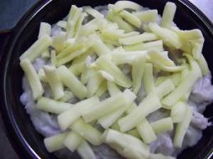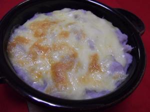 ![]() 里芋ソースを流し入れ、上からとろけるチーズをかけてトースターで5分焼いたら出来上がり!
