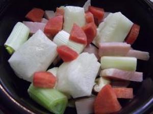 ![]() 耐熱容器にバターを塗って、具材を入れて、