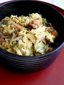 ときたまごを入れ火が通ったら、ごはんに乗せて完成