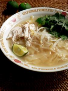 器に盛り付け、とり肉、香菜、もやしを乗せて完成!