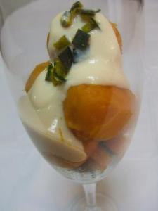 ![]() 少し身の付いた部分を角切りにしたものボール、豆腐ソース、皮の部分を角切りにしたものと順に器に入れたら出来上がり