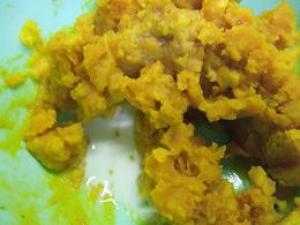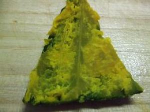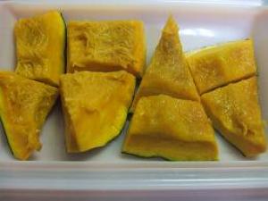 ![]() かぼちゃの身と皮と分けます。これは皮の部分。