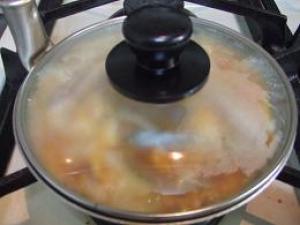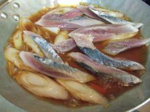![]() 丼鍋かフライパンにめんつゆを入れて丼用にうすめて長ネギを入れて少し煮ます。
