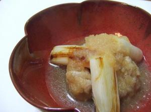 器に鶏を盛ってから、ねぎを添えて、上から煮ダレをかけます。お好みで七味をふって!