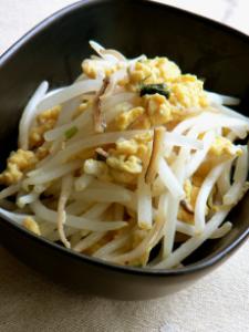 フライパンに油を小さじ1、もやしを30秒ほど強火で炒める