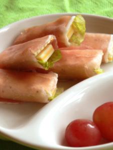 広げた生ハムに「1」を乗せ、オリーブオイルを1~2滴