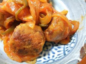 玉ねぎはスライスし、ピーマン・エリンギは細切りにし、オリーブオイルをひいたフライパンで炒めます。