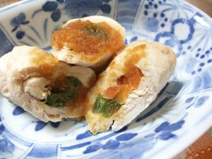 細切りにしたにんじんといんげん(2本)を鶏ささみで巻きます。