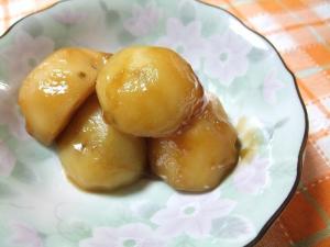鍋にじゃがいも・だし汁・砂糖を入れ、じゃがいもが柔らかくなるまで煮ます。