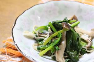 ほうれん草はざく切りに、椎茸とエリンギは細切りに、しめじとえのきは手でほぐします。