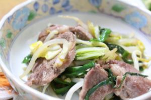 油ひいたフライパンで炒め、ラムしゃぶのたれで味付けをしたら出来上がり。