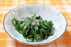 ほうれん草を茹で、水気を絞りざく切りにします。
