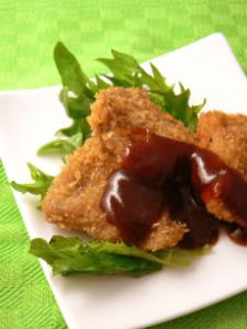 「1」をひと口サイズに切り、小麦粉、たまご、パン粉をまぶす