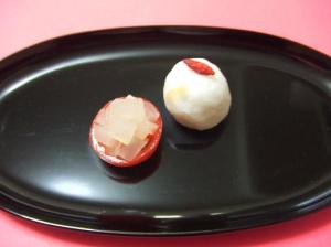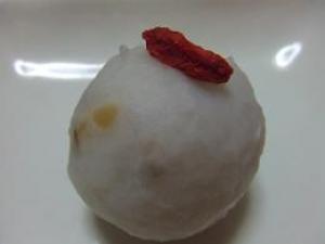 柔らかくなったら水分を捨てて、熱い内につぶして松の実を混ぜます。