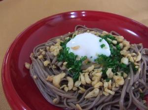 お蕎麦は茹でて、流水でぬめりを取ってザルにあげて水気を切っておきます。