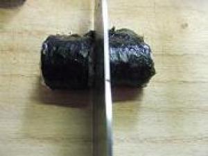 ![]() 更に、それぞれを海苔1枚分残して切ります。