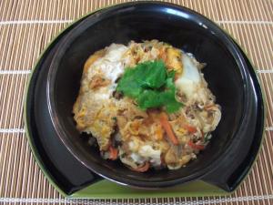 フタをして40秒〜1分→火を止めてフタをしたまま40秒待ち。三つ葉や、万能ねぎや、海苔をトッピングしたりして頂きましょう