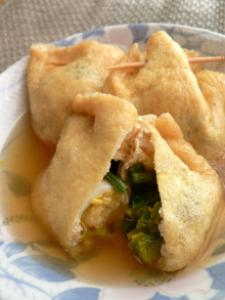 うずらの卵と「2」を「1」に入れてつまようじで口を閉じ、 <だしつゆ>で5分ほど煮込めば完成!