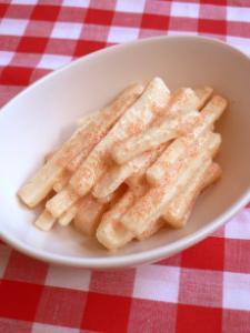 ほぐしためんたいこ、マヨネーズ、しょうゆを混ぜる