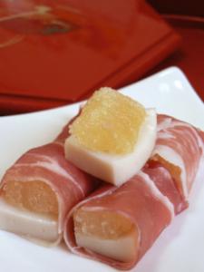 「1」を生ハムで巻き、レモン汁をかければ完成!