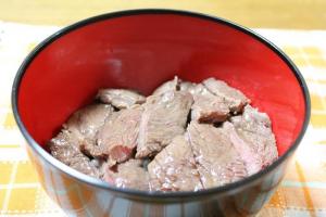 ステーキ用牛肉を片面をこんがり焼いて、中までじっくり火を通します。