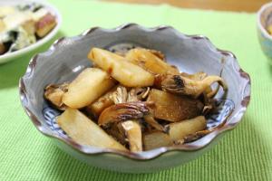 長芋・舞茸を油をひいたフライパンで炒め、うなぎのたれをかけて軽く炒めたら出来上がり。