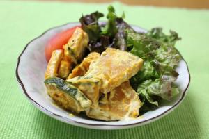 マヨネーズとカレー粉を混ぜて、かぼちゃと和えたら出来上がり。