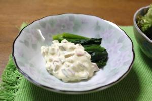 ほうれん草にタルタルソースをかけたら出来上がり。