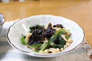 ほうれん草はざく切りに、えのきは手でほぐします。