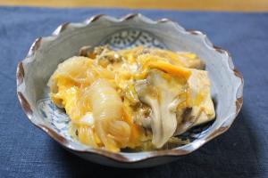 溶き卵を流し入れてフタをして火を止め、1分くらい蒸し焼きにしたら出来上がり。