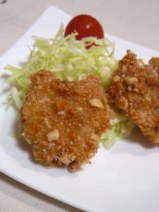 「1」を小麦粉、卵、「2」の順につけて、170℃の油でカリっと揚げれば完成!