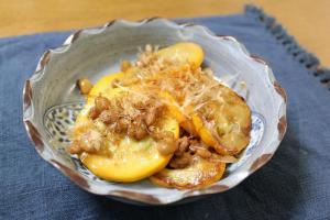 お皿に盛り付け、かつお節をパラパラっとふりかけたら出来上がり。