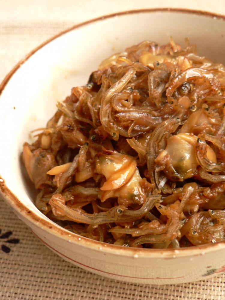 「1」と<煮汁>、あさり缶を汁ごと鍋にいれて沸騰させる