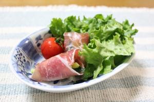 きゅうり・カニカマを生ハムでしっかりと巻いたら出来上がり。