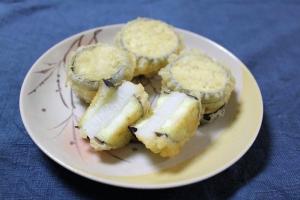 水で溶いた天ぷら粉をつけ、揚げ油でこんがりキツネ色に揚げ、つまようじを抜いたら出来上がり。