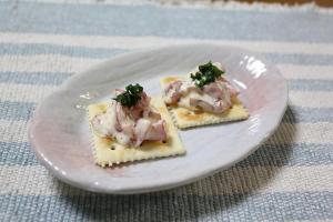 クラッカーにのせ、パセリを散らしたら出来上がり。